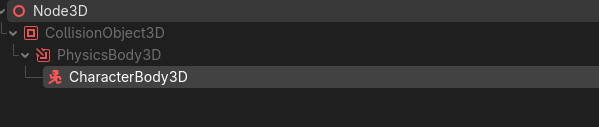 ルートノードはCharacterBody3Dノード(今回はPlayerと命名)。