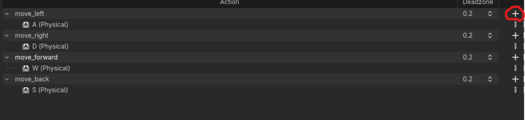 各アクションのプラスアイコンからキーボードなりパッドの入力を紐づける(ひとつのアクションに複数も可能)
