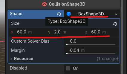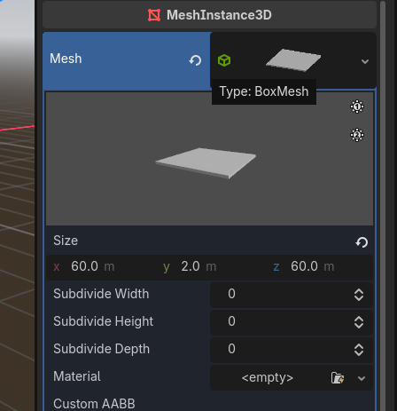 同じくBoxMeshを割り当てコリジョンと同じサイズを設定する