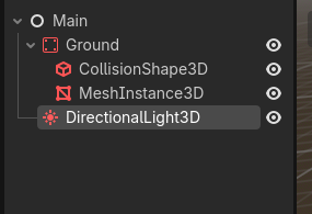 孫ノードとして1つ目はCollisionShape3D(InspecterでBoxShape3Dを割り当て、箱アイコンをクリックしてSizeを設定)