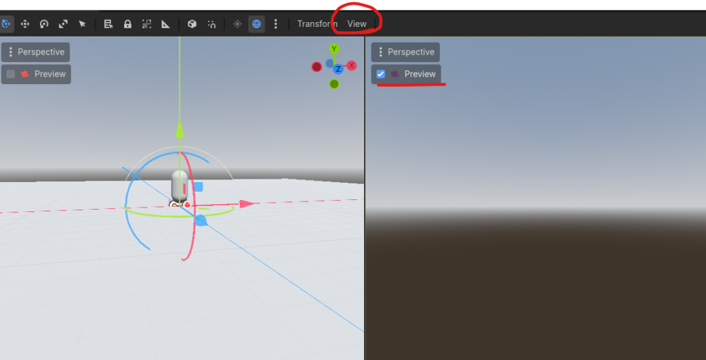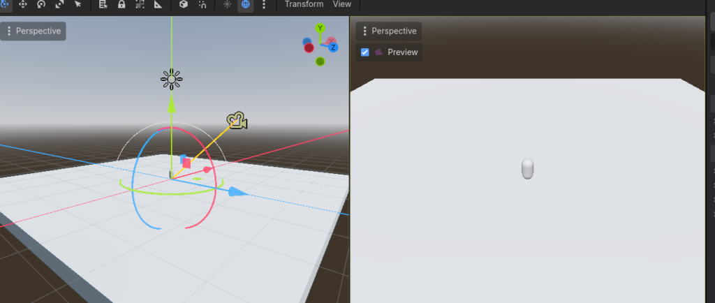 Camera3Dを選択するとPreviewというラベルが表示されるはずなので、片方にチェックを入れる。そうすると片方はカメラからの光景に