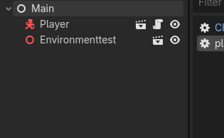 構造としては親がメインシーン、子として地面シーン、プレイヤーシーン