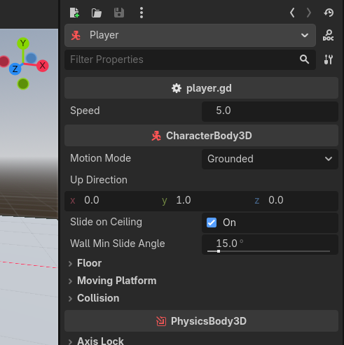 move_and_slide()“@export var SPEED = 5.0” とすることでInxpector上で速度を調整できるようになる
